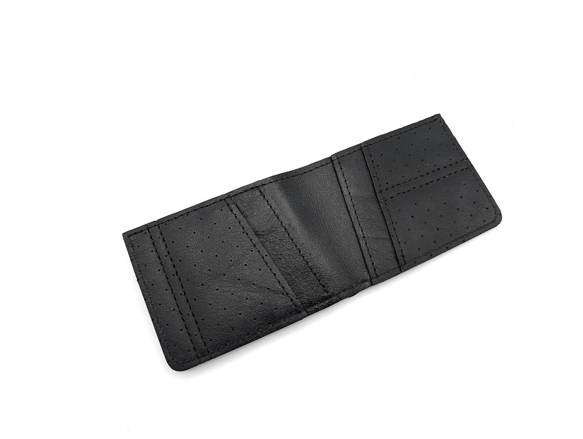 This is a unique Billfold wallet made from the original interior of a 1981 Porsche 911 SC.