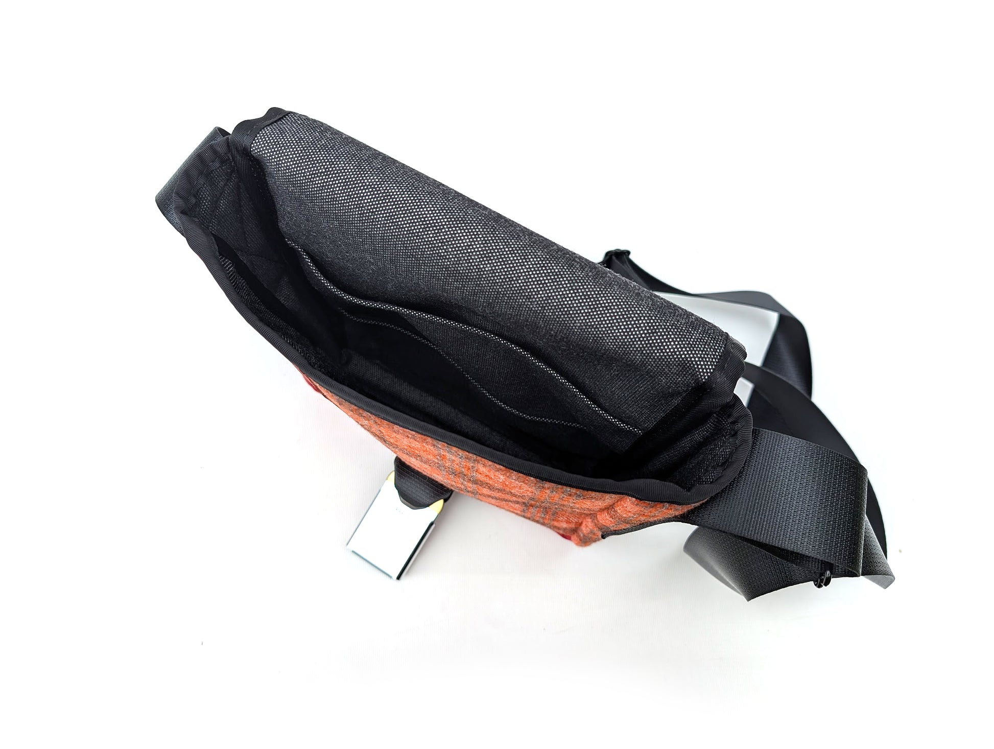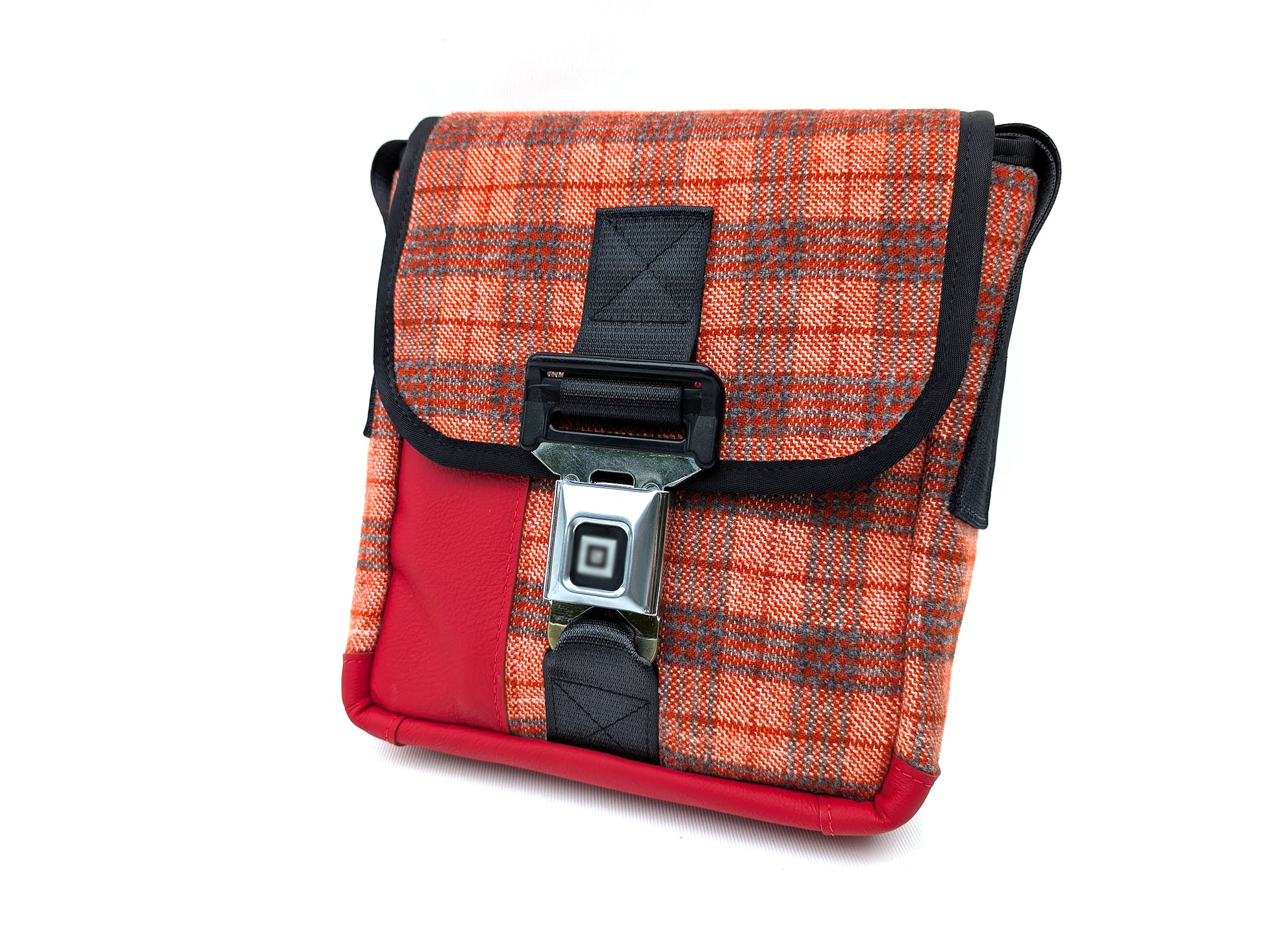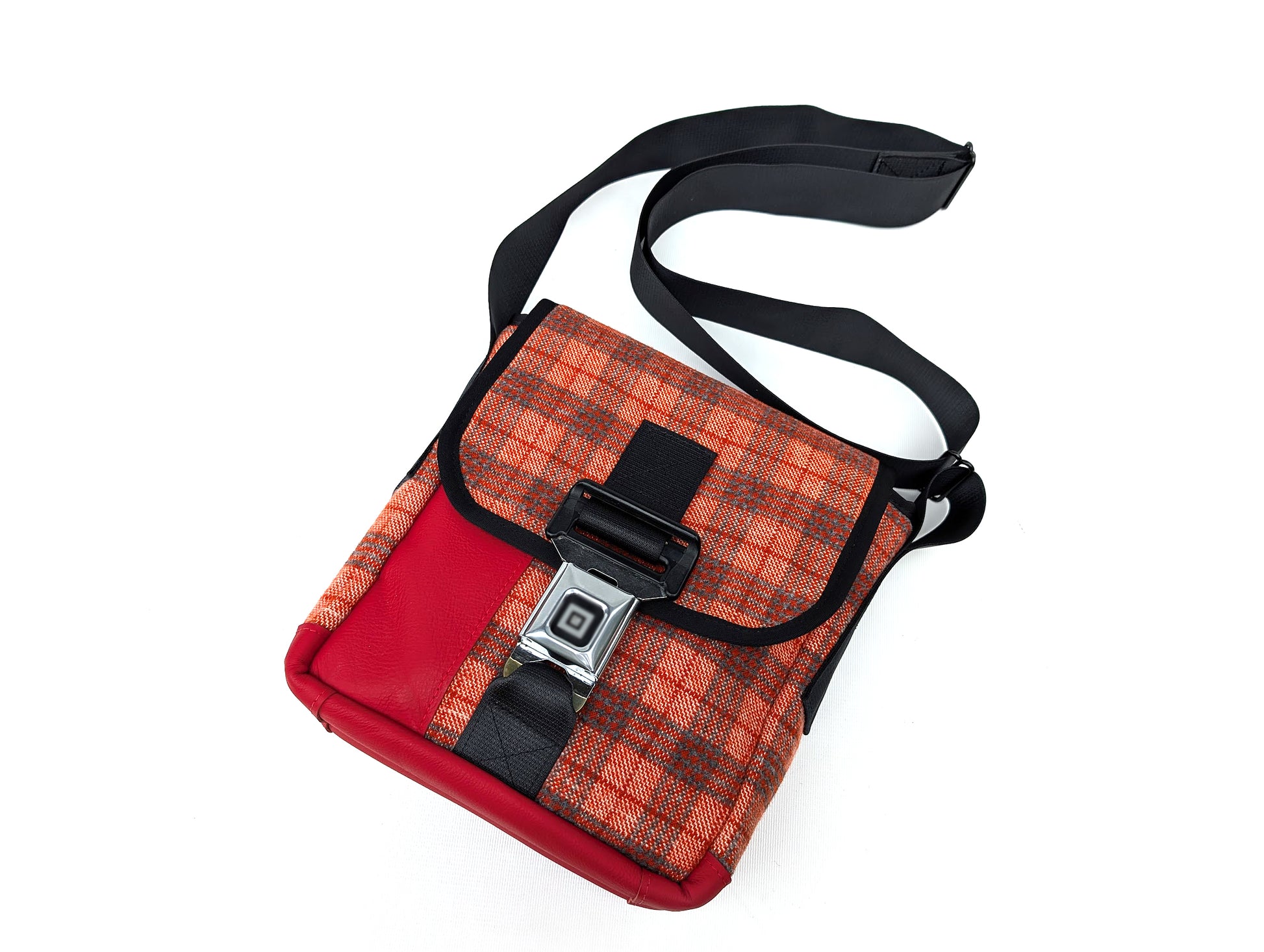 This is a unique Mini messenger / Ipad bag made from the original interior of a 1977 Chevrolet Chevette